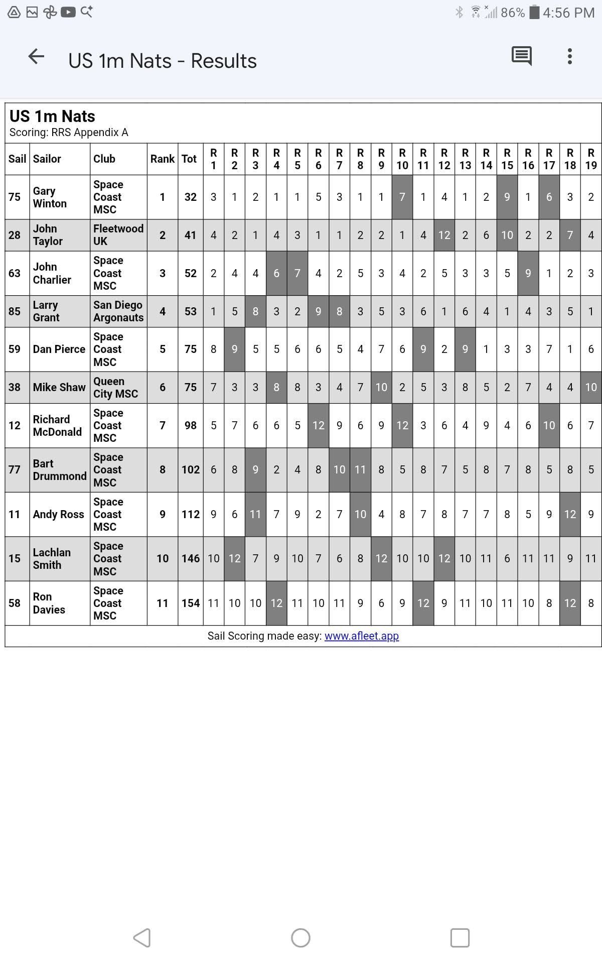 I ended up as the runner-up in this regatta sailing my 'Pringle' design. This weekend really showcased the boat’s performance and wrapped up years of development for me. I’m thrilled to have a US1m design with such potential! I am already looking forward to 2026 and hoping to make this US1m available to others in the new year.